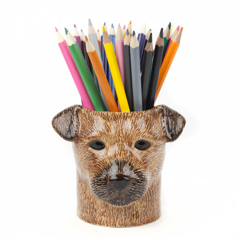 Add a playful touch to your desk with this hand-painted Border Terrier pencil pot from Quail Ceramics. Crafted from stoneware, it’s perfect for holding pens, pencils, or small desk essentials while brightening up your workspace. Measuring approximately 10 cm tall, 9 cm wide, and 11 cm deep, this charming piece doubles as a delightful decorative item. Designed with care by skilled artisans, it brings a unique and fun flair to any room.